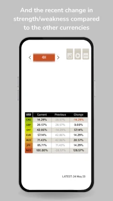 ✨ Clear & Powerful Visuals: Get an instant, uncluttered overview of currency strength. Want more detail? Dive into percentage strength changes (not just price) to understand the real momentum behind a move.