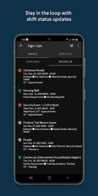 The InTime Scheduling App is ideal for law enforcement & public safety employees. With InTime, all employees get easy to use, on-the-go access to their shift schedules & details, as well as equal opportunity to sign up as soon as new shifts are posted.