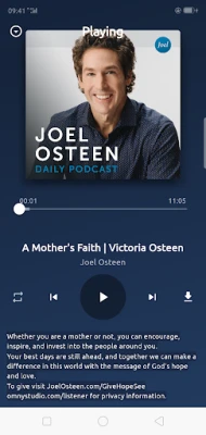 Some major features of this app are: • Dark and light theme mode. • Recent audio and video podcasts. • Download sermons and audio. • Bookmark the audio sermon.